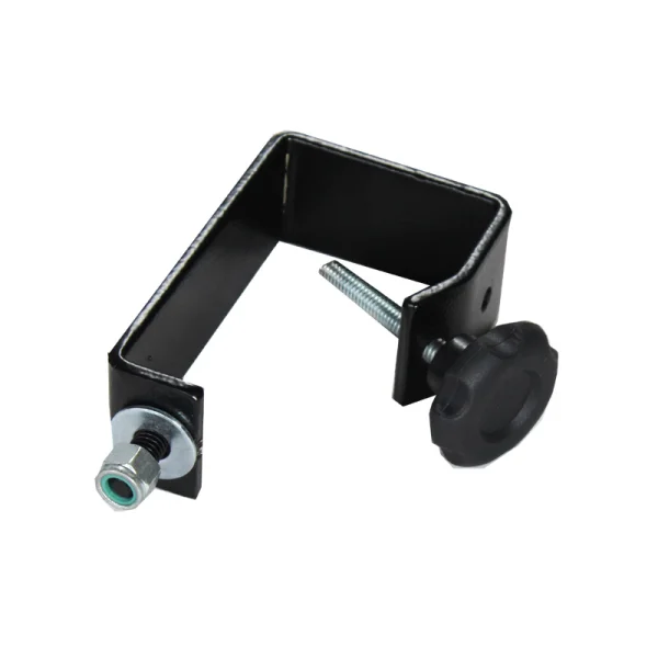 Gancho para fixação de refletores; - Fabricado em Aço SAE1020; - Abertura para tubos de 2”; - Cor: Preta; - Carga máxima: 30 Kg.
