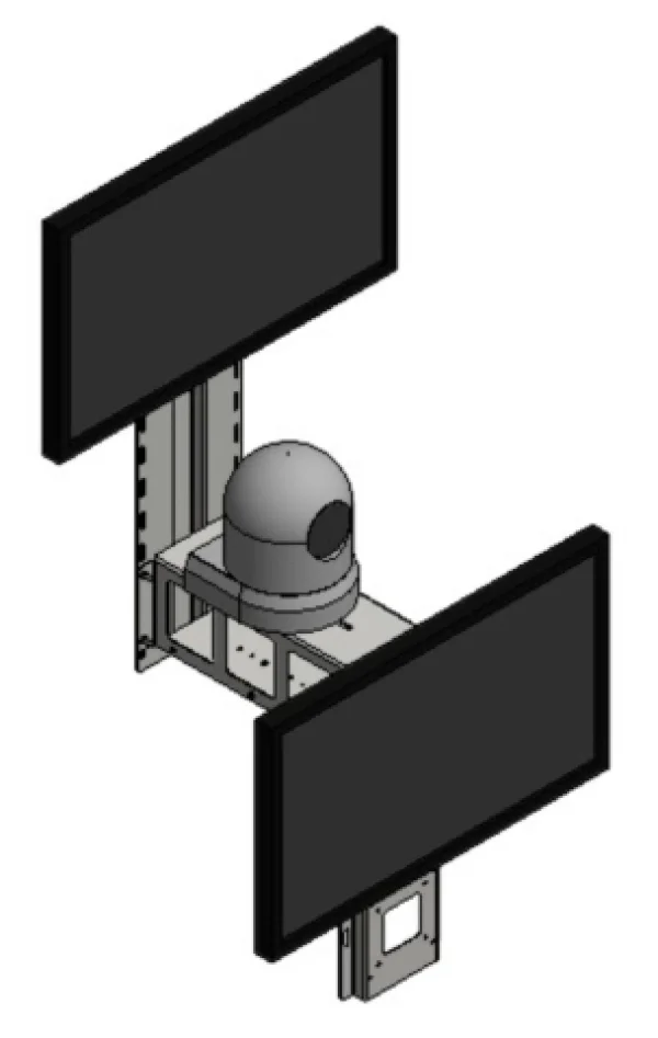 Este modelo usa 2 monitores, um para exibição dos textos e outro para retorno de imagens com ajsutes de altura em ambos