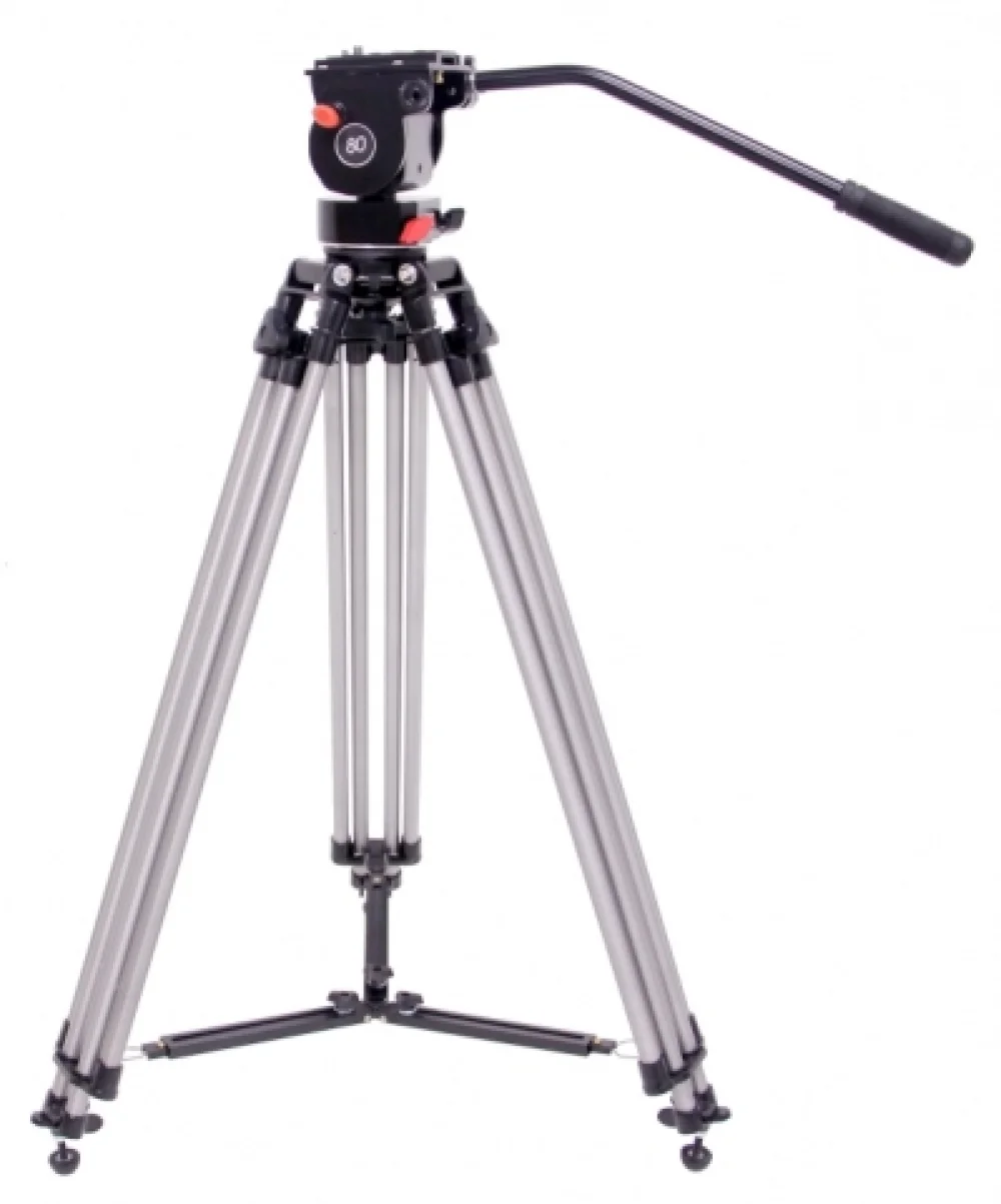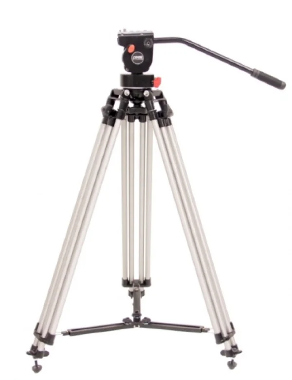 Possui cabeça com sistema fluido, sendo todo ele fabricado em alumínio. Possui nível na cabeça